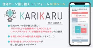 「KARIKARU」は、国内750行以上の金融機関、16,000件以上の住宅ローンプランからAIが融資承認率まで加味した上で最適な提案する住宅ローン借り換えDXツールです。専属の住宅ローンアドバイザーによるチャットサポートを通して住宅ローン申請にともなう煩雑なお手続きをオンラインで簡単に完了することが可能となります。