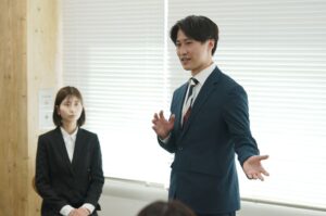 入社式では代表取締役である西坂、常務取締役の萩原からのお祝いの言葉のほか、新入社員5名からのパーソナルミッションの発表、スペシャルコンテンツが行われました。